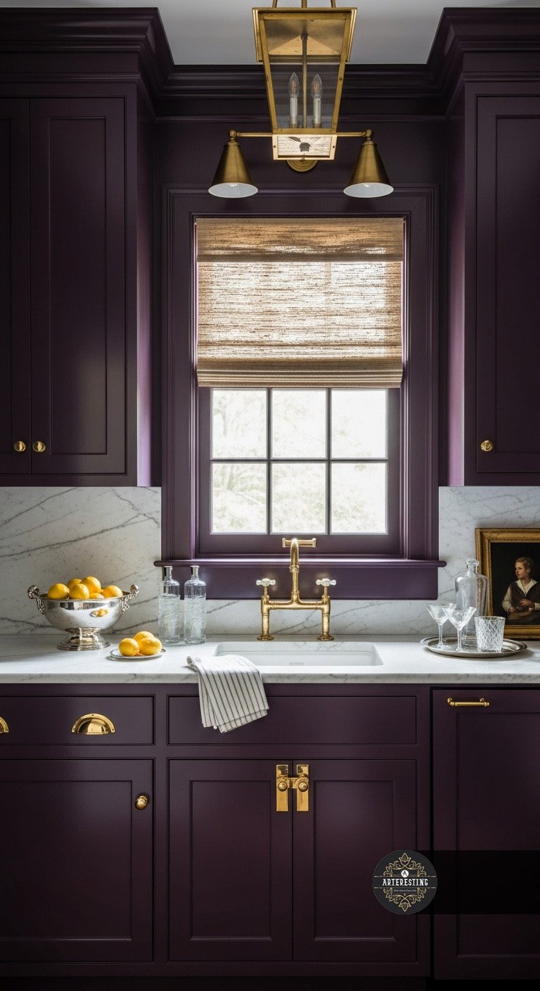 Invest in Benjamin Moore’s Carter Plum for your den, paired with rich textiles.
