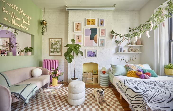 ‘There’s no one-layout-fits-all when it comes to living room design; however, I always advise my customers and clients to be wary of trying to fit too much into a space. You never want a living room to feel claustrophobic or too crowded, so it’s important to work with the space you have and place your pieces so that there’s ample room to maneuver around them,’ says designer Kathy Kuo.
