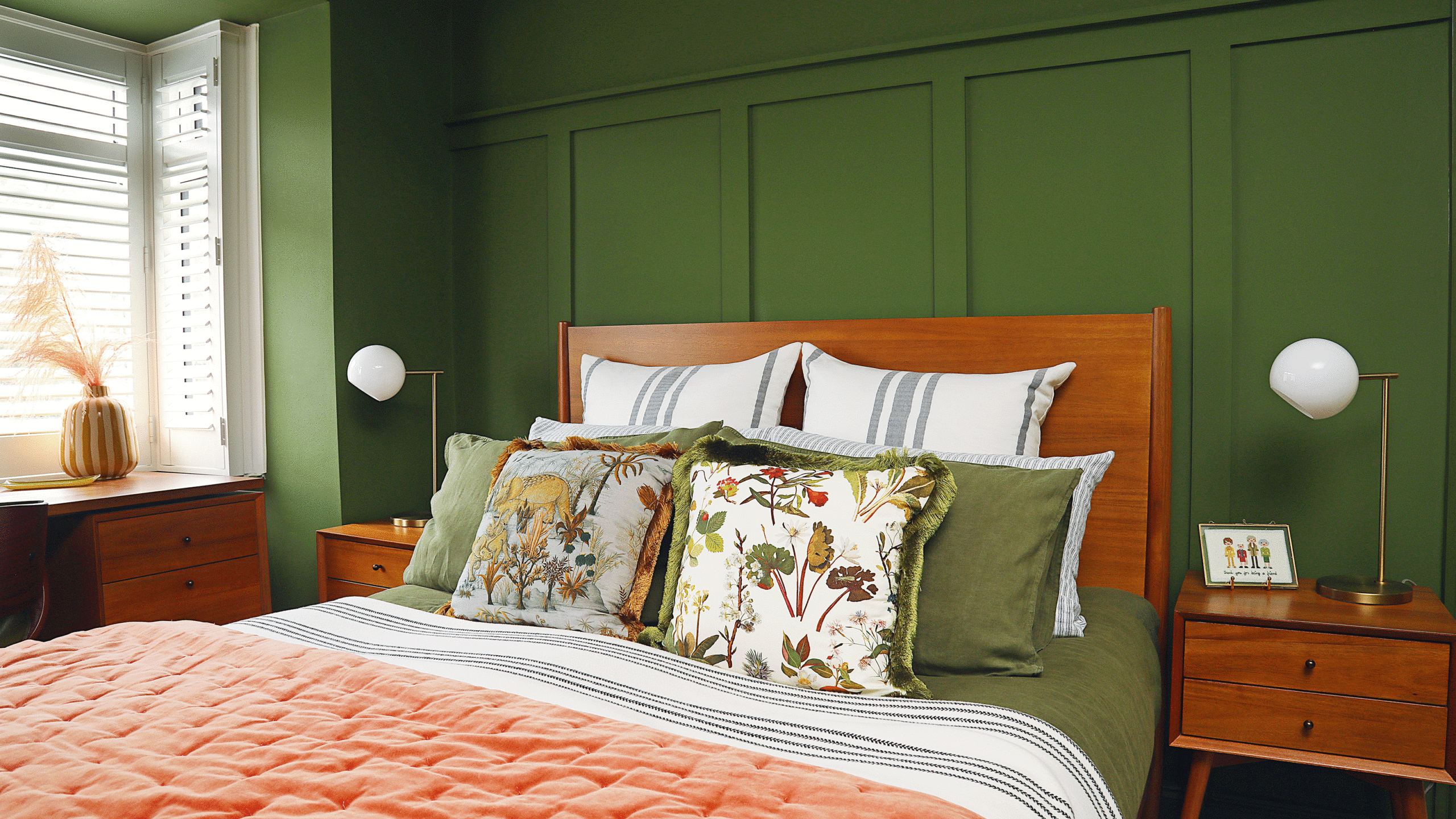 Design Tip: Try an even colour split on walls and ceiling for a moody, intimate effect. Incorporate rattan furniture, trailing houseplants, and natural textures to soften the darkness and add life.