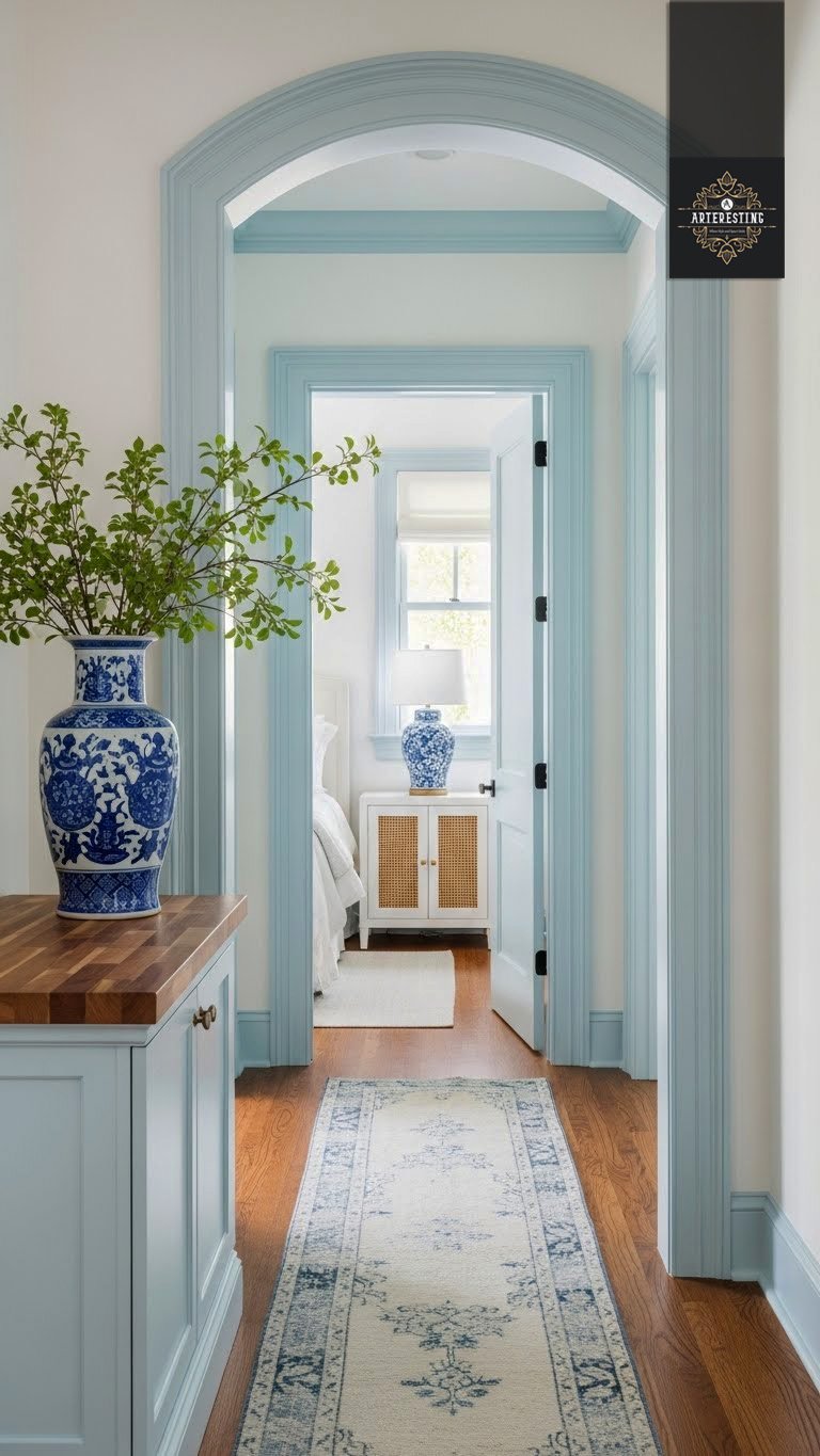 Contrasting Trim: A classic approach involves painting walls and ceilings in one color while opting for a contrasting trim. This technique adds rhythm and depth, making it a simple yet effective update to a color-drenched room.
