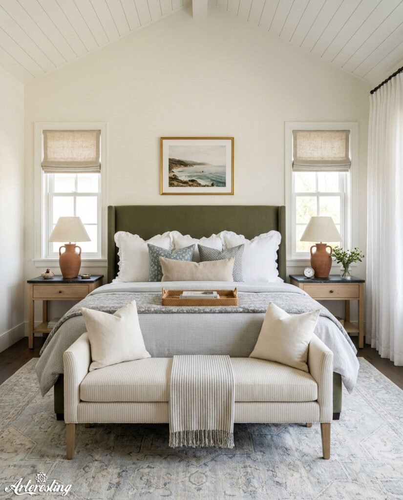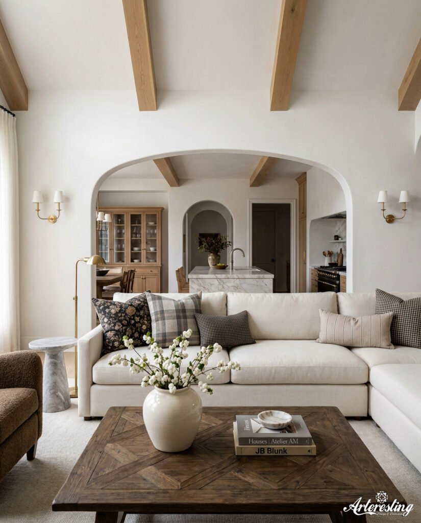 The ultimate “cloud” look. This warm, neutral tone opens up small spaces and pairs perfectly with organic wood textures and soft lighting.