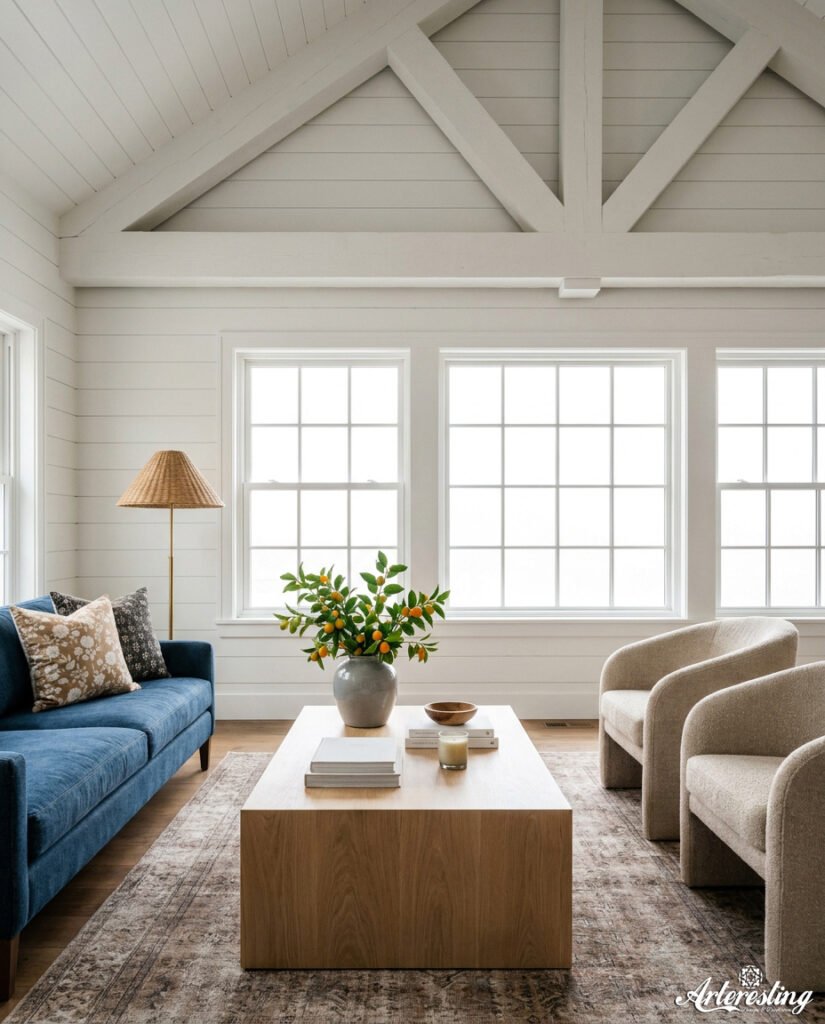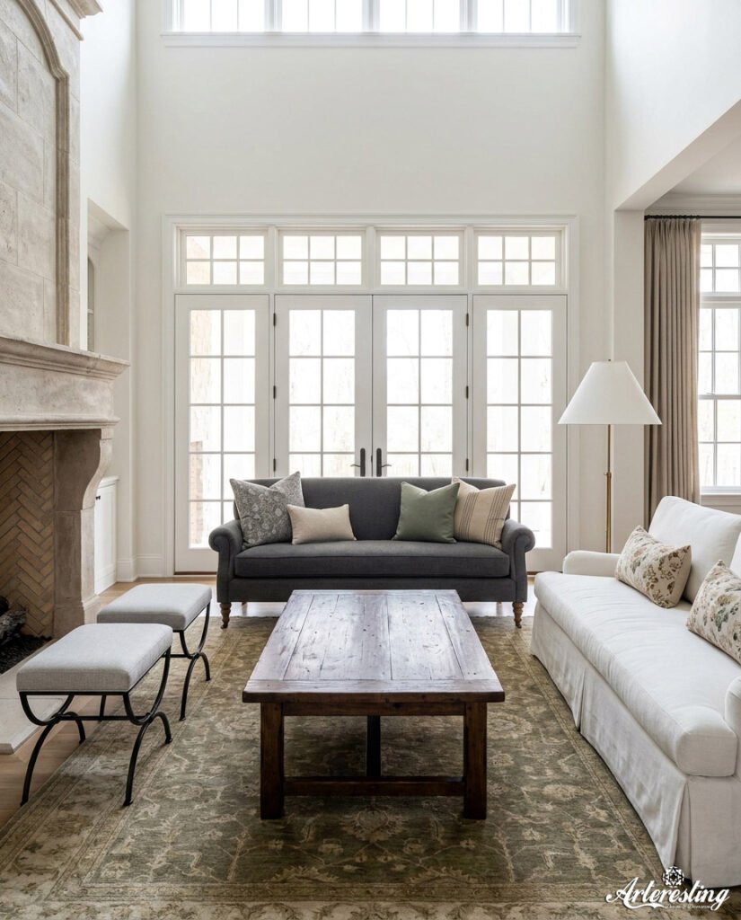 - Pull accent colors from existing rugs, artwork, or furniture.