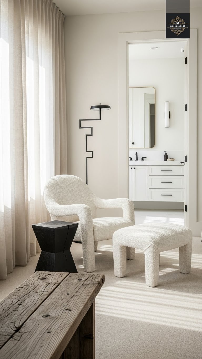 Every neutral room needs a “drop of ink.” A black accent piece provides the definition your eye is looking for.