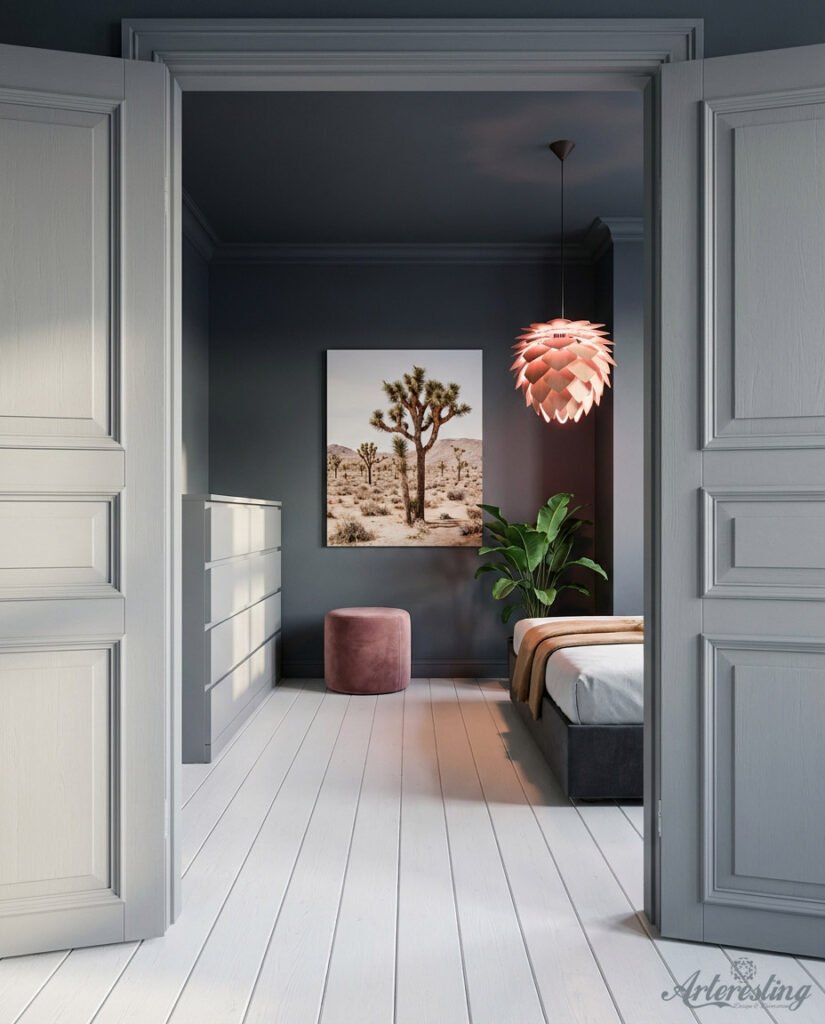 If you want to make a bold statement, commit to “color drenching” by painting all four walls and the trim the same rich color. Alternatively, apply inexpensive DIY picture-frame molding to flat walls before painting to achieve an instant, architectural luxury.