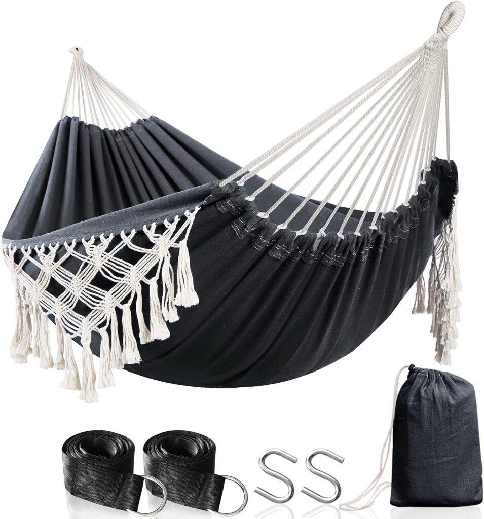 Anyoo Cotton Hammock – Comfortable & Elegant Deluxe Hammock with Tassels – Supports Up to 450lbs – Portable with Travel Bag for Porch, Patio, Yard, Bedroom & Outdoor/Indoor