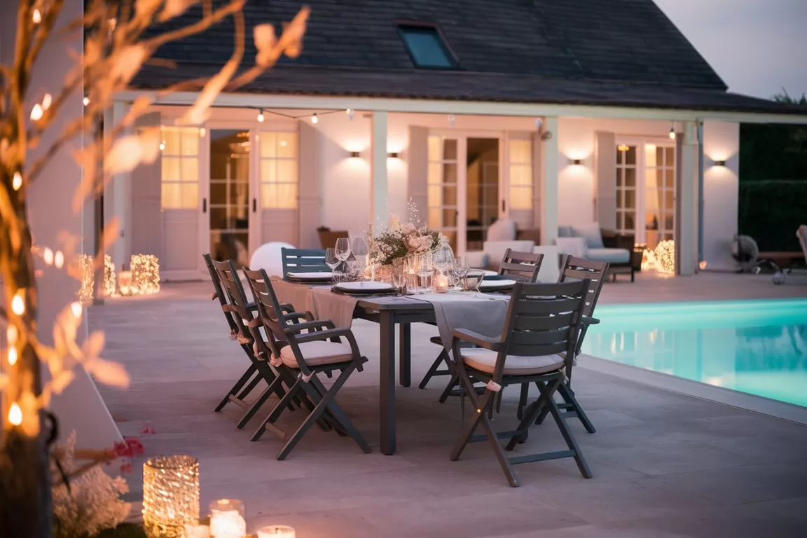 Adirondack chairs are a timeless choice for outdoor seating, offering both comfort and style. Their wide armrests and slanted seats make them perfect for lounging. Position a few Adirondack chairs around your fire table, by the pool, or in a secluded corner of your yard. Choose from a range of colors and finishes to match your outdoor decor and create an inviting seating area.