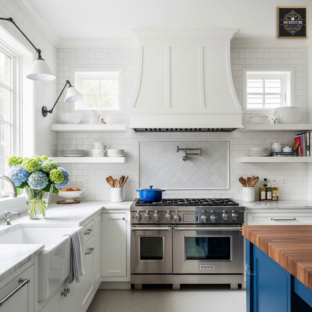 For a timeless look, opt for soft whites that harmonize seamlessly with the kitchen’s elements.